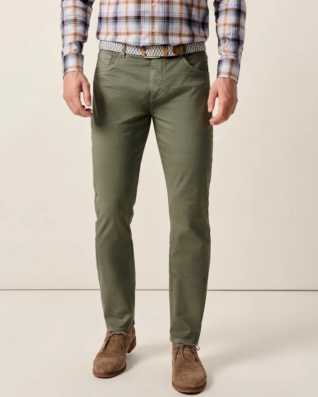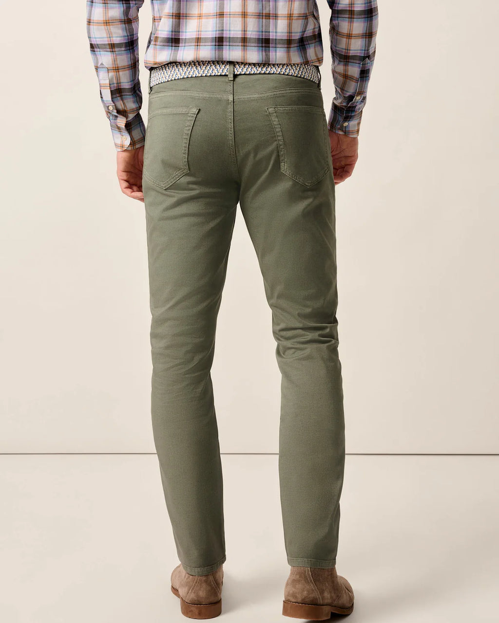 This refined sateen woven pant is garment-dyed for a broken-in look and made with very lightweight material perfect for dressier nights.