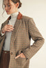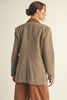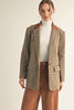 Classic tweed, luxe finish. Our herringbone blazer features a sharp one-button closure and a rich suede contrast collar that sets it apart. Tailored through the shoulders with an easy, slightly longer silhouette, it’s fully ready to dress up denim or polish wide-legs.