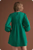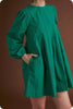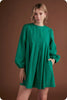 Studio Strut and Bolt Collection. Pin tuck long sleeve mini dressi n cotton poplin fabric. This relaxed babydoll mini dress features pin-tuck detail throughout front/back bodice, a round neck, side pockets, long bubble sleeve with elastic cuff, shirred shoulder, lining, and keyhole with button closure at back.