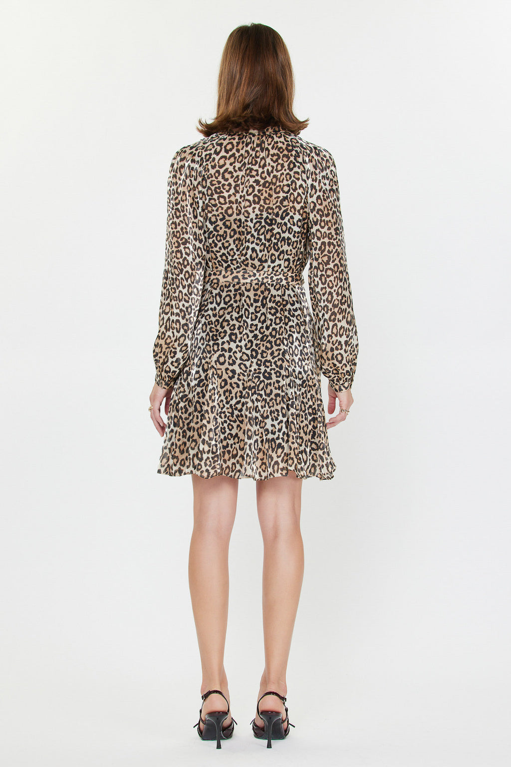 Turn heads with timeless confidence in The Luxe Leopard Shirtdress. Designed in a stunning black-and-gold animal print, this silky mini dress blends sophistication with a touch of boldness. The button-front silhouette and tailored waistband create a flattering shape, while the long sleeves add balance and polish.