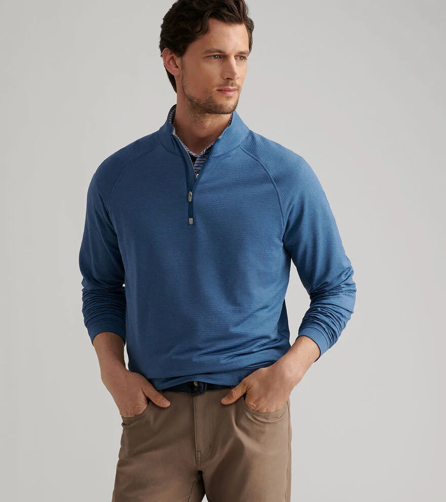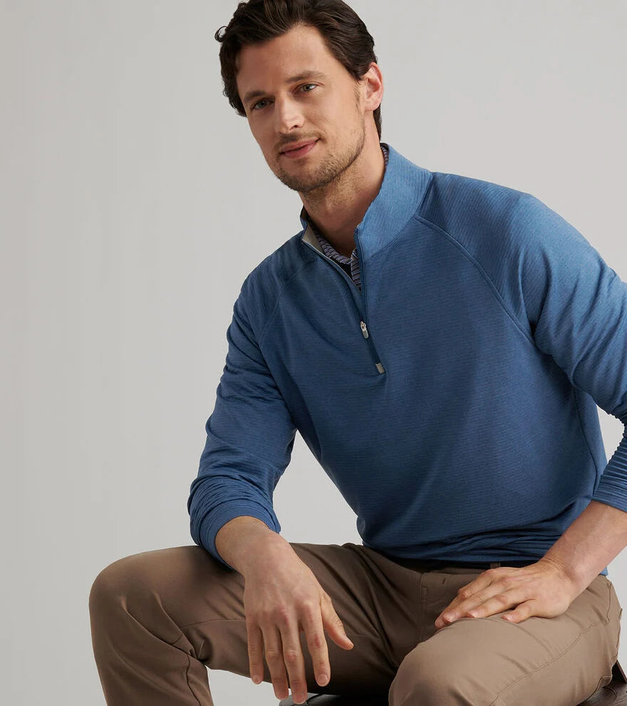 This lightweight pullover is the ideal layer for cool weather on and off the course. It features performance properties like four-way stretch, wicking and easy-care, while a ribbed fleece interior delivers softness, warmth and breathability.