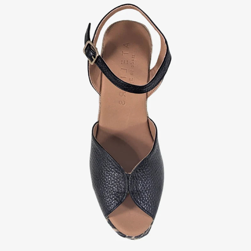 Sleek and refined, the Nina heel by Ateliers is designed to elevate any look with ease. Crafted in smooth black leather, this strappy sandal features a minimalist silhouette with a secure buckle closure for a flattering fit.