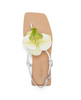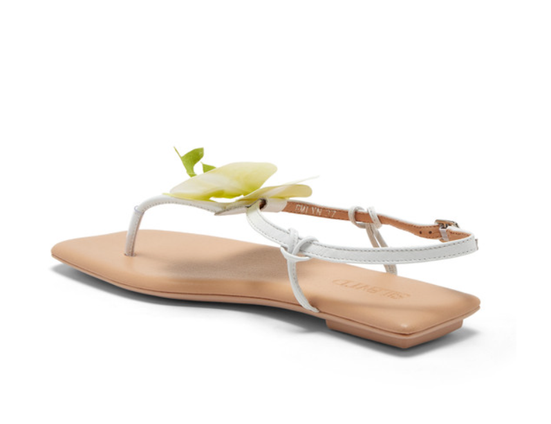 EMLYN features a delicate ankle strap and a bold orchid detail for a modern, feminine touch. The minimalist silhouette and square toe make it the perfect statement flat for warm-weather styling - from brunch dates to evening strolls.