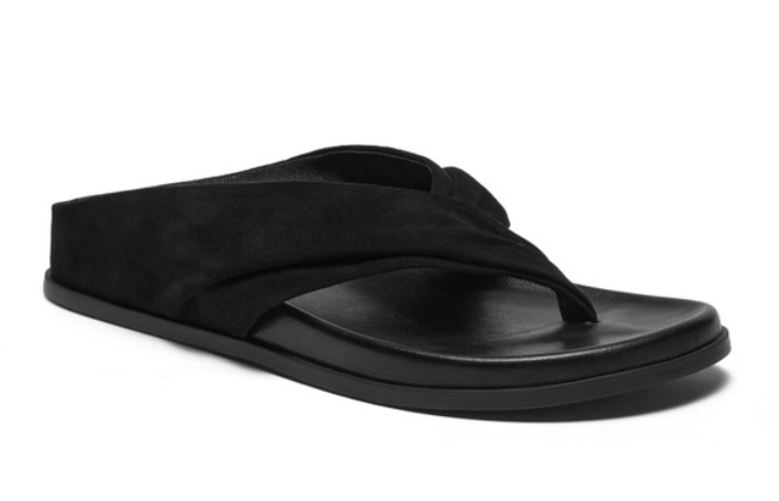 Step into understated luxury with the HEDLEY Sandal, a refined take on the classic thong silhouette. These sandals feature a sophisticated criss-cross strap design crafted from plush black suede for a soft, premium feel.