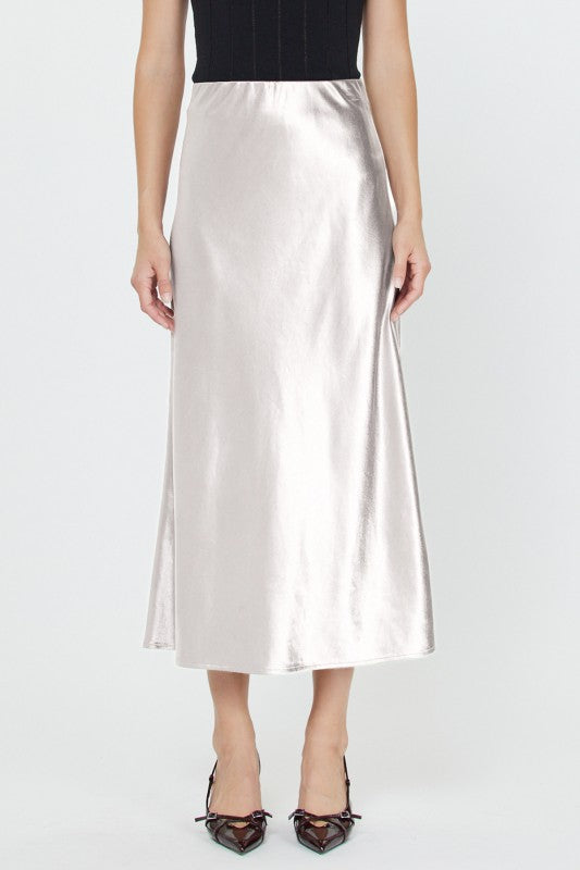 Cut on the bias for a graceful, fluid drape, this midi-length skirt is crafted from shiny satin-like woven fabric that moves with you. An elasticated waistband ensures a comfortable fit, and the mid-calf hemline offers versatile styling options—from casual daytime looks to evening elegance. Wear it with the coordinating cowl top for a sleek, polished ensemble or mix it with knits and tees for a modern twist.