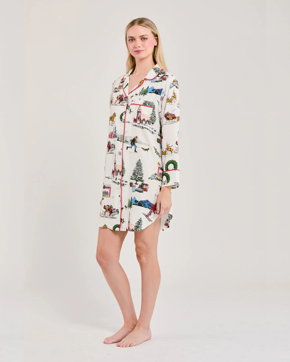Say hello to your new sleepwear staple. Our women’s sleep shirt is crafted from a luxurious 50% cotton and 50% modal blend for a breathable, buttery-soft feel. Inspired by the classic men’s button-down but reimagined for her, this nightshirt features a relaxed fit, contrast piping, and just the right amount of polish.