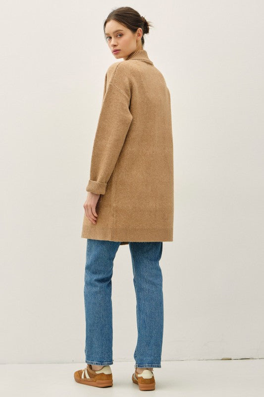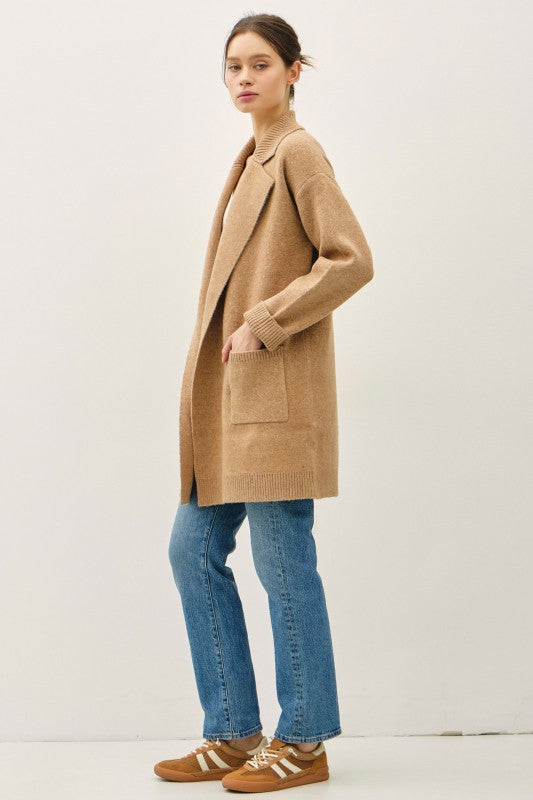 Wrap yourself in effortless warmth with The Camel Haven Cardigan, a luxe, ultra-soft long cardigan designed for cozy layering. Featuring an open-front silhouette and a refined lapel collar, this piece blends the structure of a coat with the comfort of your favorite knit.