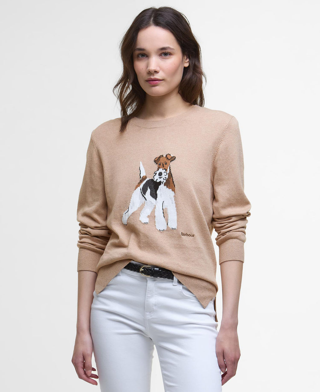 If you're looking for a playful new addition your knitwear collection, the Barbour Fareham Crew Neck Jumper is the perfect style. Crafted from a lightweight cotton-cashmere knit, this bold design features a dog intarsia to the chest and ribbed knit trims. Simply layer it over shirts or style it alone for a statement look.