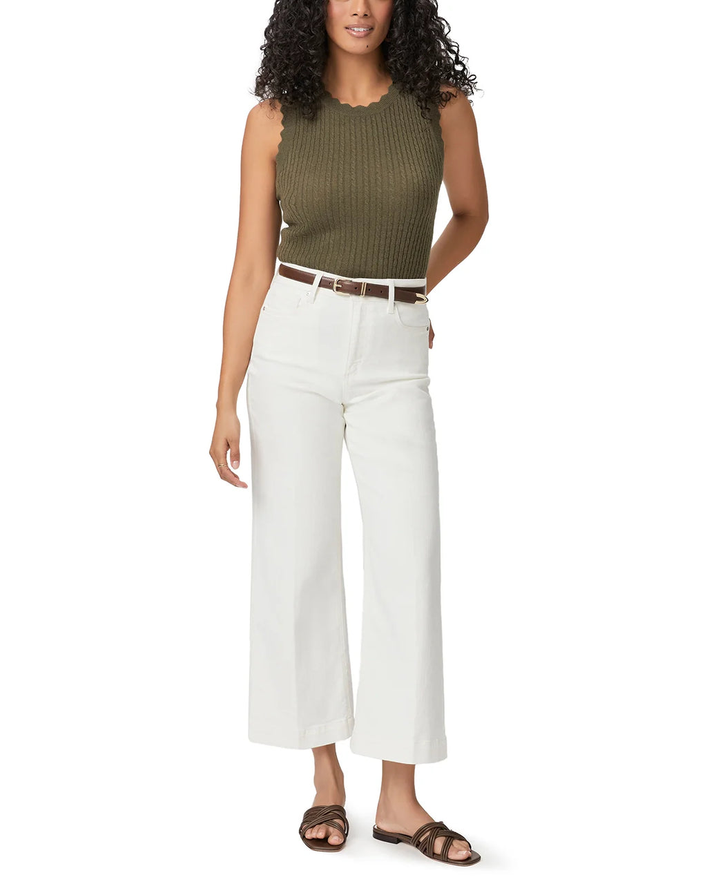 This ultra high-waisted wide leg has an easy, relaxed fit with a raw hem and a 31” inseam. Crafted in comfort stretch light ecru denim with matching light ecru hardware, this pair has plenty of coverage and the perfect amount of stretch.