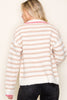 Sweet, soft, and irresistibly cozy — this textured striped cardigan brings all the charm. Designed with a classic collar, full button-down front, and long sleeves, it delivers that perfectly relaxed, lived-in feel. The neutral stripe pattern is accented with playful pops of pink, while front patch pockets add both function and personality. A feel-good, everyday layer you’ll reach for all season long.