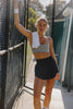 Seize the run in these so-flattering shorts, featuring a durable, water-resistant fabrication, built-in briefs and a knit high-rise waistband.