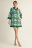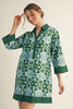 Easy, artful, and ready for every day. Our boho floral dress features 3/4 sleeves, a button-down V-neckline, and handy side pockets—all framed by solid contrast collar, cuffs, placket, and hem for a crisp finish. The relaxed, slightly A-line silhouette skims without clinging and lands just above the knee for effortless styling with boots or flats.