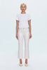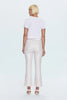 A modern take on the classic bootcut, Lennon features a high rise and slim fit through the hips and thighs before subtly flaring at the calf for balanced proportion. The cropped 27" inseam flatters every shoe, from heels to flats. Crafted from high-stretch fabric in Ivory Luster, a pearly off-white with a sleek coated finish that adds soft sheen and elevated polish.