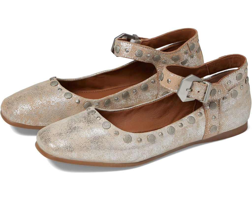 Slip into these so chic flats featured in a buttery soft leather with an adjustable ankle strap, stunning studded details, and a classic round toe.