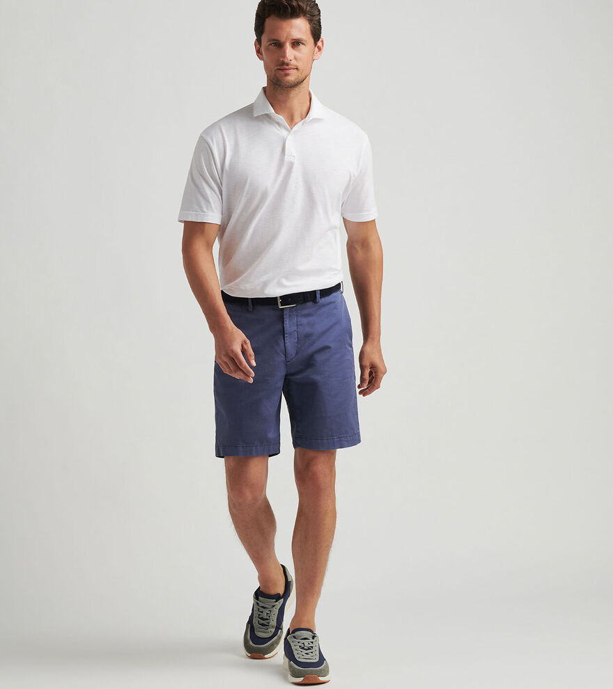 A lightweight design perfect for warm weather wear, this short calls on soft cotton with a hint of stretch for versatile style in an casually refined look. Finished with an 8" inseam.